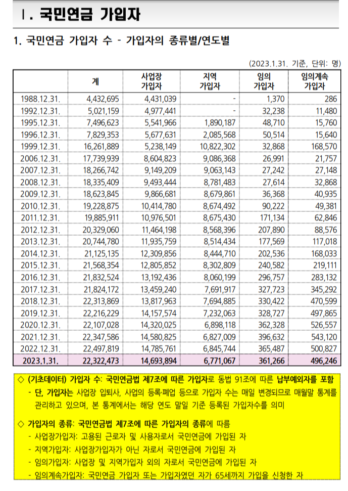 국민연금 가입자 현황(출처 - 국민연금연구원)