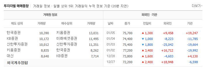따라서 개인 투자자는 기관이나 외국인 세력을 따르고, 세력이 약해도 어떤 주식을 매수하고 매도하여 이익을 얻습니다. 최근의 트렌드는 외국인 매수보다 기관 투자자를 따르는 것이 많은데, 이는 외국인의 매수가 허수일 가능성이 있고 개인의 단기 거래가 기관과 유사하기 때문입니다.