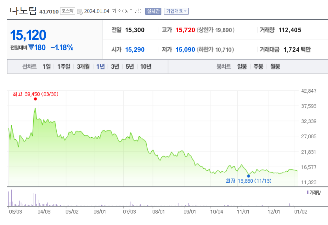 나노팀 주가 분석
