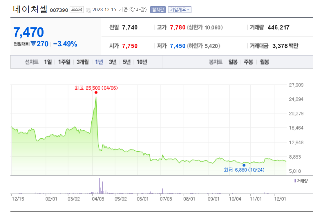 네이처셀 주가 분석
