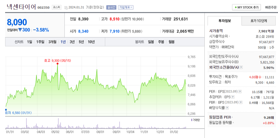 이 글은 넥센타이어 주가의 전망과 목표 주가, 기업 정보에 대해 설명합니다. 주식 투자에서 핵심은 미래의 기업 가치를 예측하고 선제적으로 움직이는 것입니다. 투자 대상을 결정하기 전에 현재 기업의 상황과 수치를 검토하는 것이 필요합니다. 넥센타이어 주식의 주요 현황과 투자 정보를 확인하고 주식 투자에 도움이 되는 자료들을 모아두었으니 끝까지 읽어보고 투자에 도움을 받으시길 바랍니다.