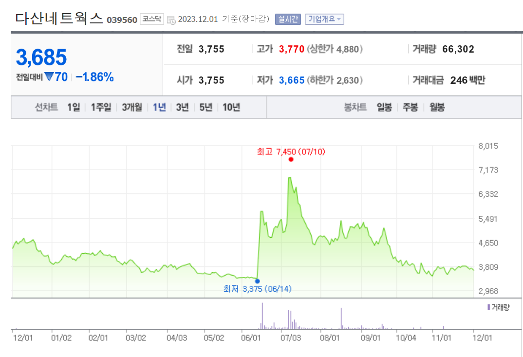 다산네트웍스 주가 분석