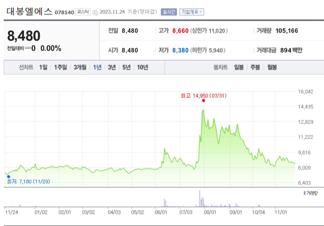 대봉엘에스 주식 결론