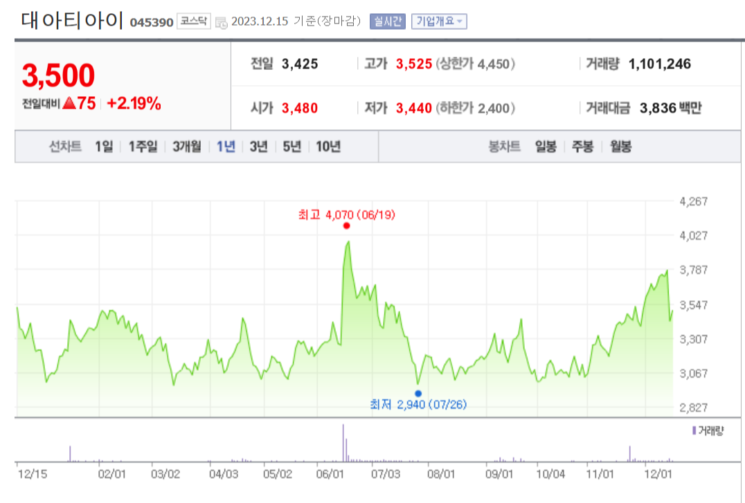 이 글에서는 대아티아이 주가 전망과 목표 주가, 기업 정보에 대해서 설명합니다. 주식 거래에서 중요한 부분은 현재 기업 가치보다는 미래의 기업 가치를 예측하고 먼저 행동하는 것입니다. 투자할 종목을 고르기 전에 현재 기업의 상황과 지표를 살펴보는 것이 중요합니다. 대아티아이 주식의 주요 현황과 투자 정보를 확인하시고 주식 투자에 도움을 줄 자료들을 모아 두었으니 투자에 도움을 받으시길 바랍니다.