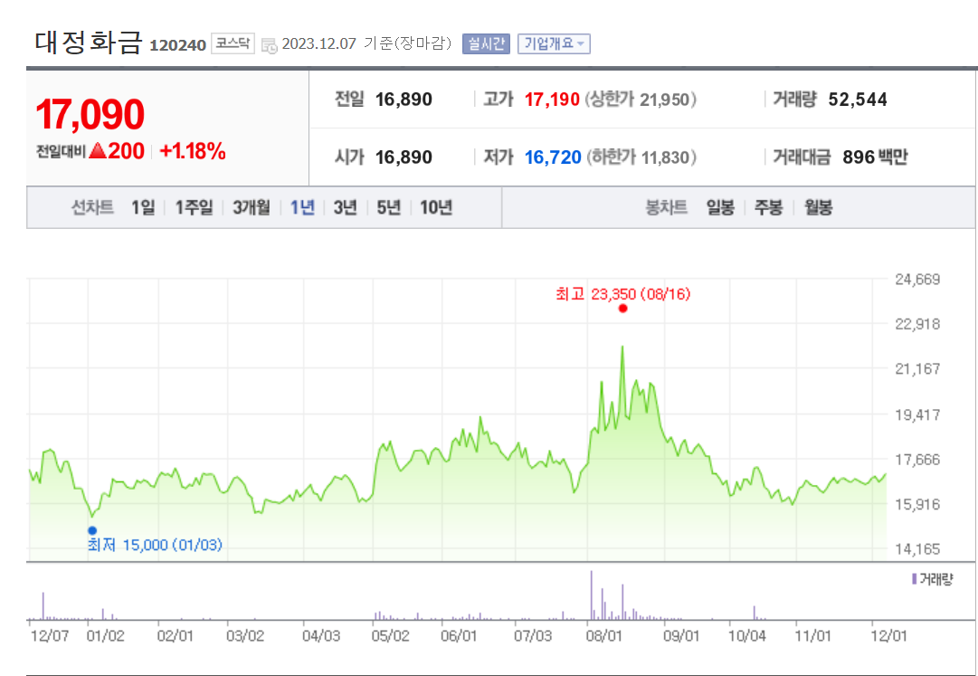 이 글에서는 대정화금 주가 전망과 목표 주가, 기업 정보에 대해서 설명합니다. 주식 시장에서 중요한 것은 미래의 기업 가치를 예측하고 선제적으로 움직이는 것입니다. 투자할 종목을 고르기 전에 현재 기업의 현황과 데이터를 확인하는 것이 필요합니다. 대정화금 주식의 주요 현황과 투자 정보를 확인하시고 주식 투자에 도움이 될 만한 정보들을 모아 놓았으니 투자 시 참고하시기 바랍니다.