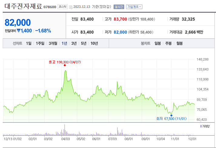 이 글에서는 대주전자재료 주가 전망과 목표 주가, 기업 정보에 대해서 설명합니다. 주식 투자의 핵심은 현재의 기업 가치보다는 미래의 가치를 예측하며 먼저 대응하는 것입니다. 투자 대상을 결정하기 위해 먼저 현재 기업 상태와 수치를 검토해야 합니다. 대주전자재료 주식의 주요 현황과 투자 정보를 확인하시고 주식 투자에 도움이 될 만한 정보들을 모아 놓았으니 투자를 고려하실 때 참고하세요.