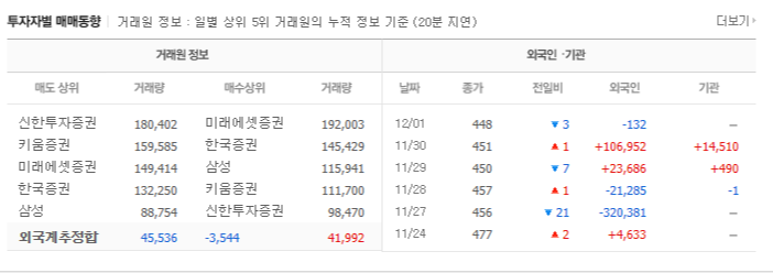 그 때문에 개인 투자자는 기관이나 외국인 세력을 따르며, 약한 세력 속에서도 어떤 것을 매수하고 매도해 이익을 냅니다. 최근의 트렌드는 외국인 매수보다 기관 투자자를 따르는 것이 많은데, 이는 외국인의 매수가 허수일 가능성이 있고 개인의 단기 거래가 기관과 유사하기 때문입니다.