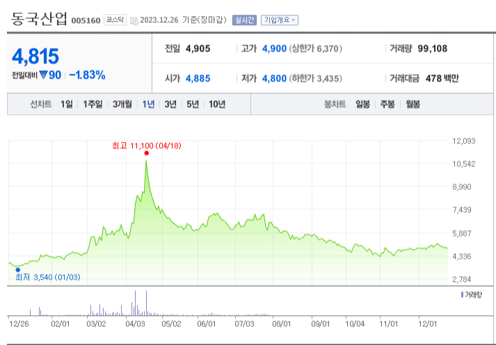 이 글에서는 동국산업 주가 전망과 목표 주가, 기업 정보에 대해서 설명합니다. 주식 시장에서 중요한 것은 미래의 기업 가치를 예측하고 선제적으로 움직이는 것입니다. 투자할 종목을 고르기 전에 현재 기업의 현황과 데이터를 확인하는 것이 필요합니다. 동국산업 주식의 주요 현황과 투자 정보를 확인하시고 주식 투자에 유용한 자료들을 정리하여 제공하오니 투자에 도움 받으시길 바랍니다.