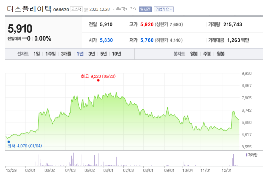 2023-12-30 오후 5:05:03 기준 전일대비 0 전일종가 5,910