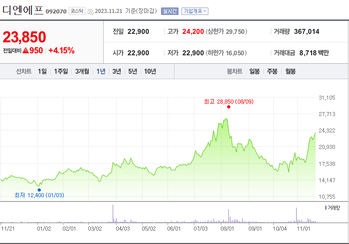 디엔에프 주가 분석