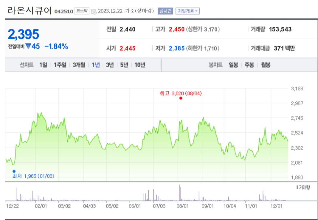 이 글에서는 라온시큐어 주가 전망과 목표 주가, 기업 정보에 대해서 설명합니다. 주식 투자의 중심은 미래의 기업 가치를 예측하고 선제적으로 움직이는 것입니다. 투자할 종목을 고르기 전에 현재 기업 상태와 지표를 살펴야 합니다. 라온시큐어 주식의 주요 현황과 투자 정보를 확인하시고 주식 투자에 도움이 될 만한 정보들을 모아 놓았으니 투자를 고려하실 때 참고하세요.
