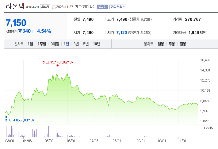 라온텍 주가 분석