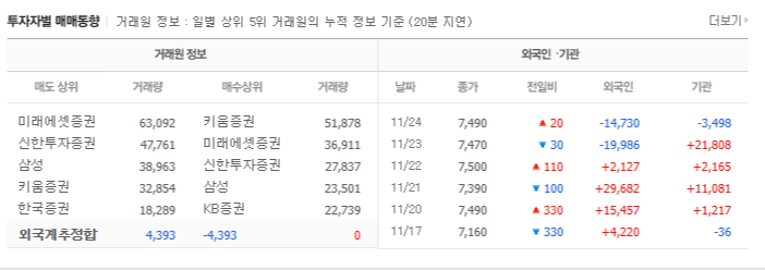 그러므로 개인 투자자는 기관이나 외국인 세력을 따라가며, 세력의 약점을 활용해 어떤 것을 매수하고 매도해 수익을 냅니다. 기관 투자자를 따르는 경우가 최근에 자주 발생하며, 이는 외국인 매수의 불신과 개인의 단기 거래가 기관과 유사하기 때문입니다.
