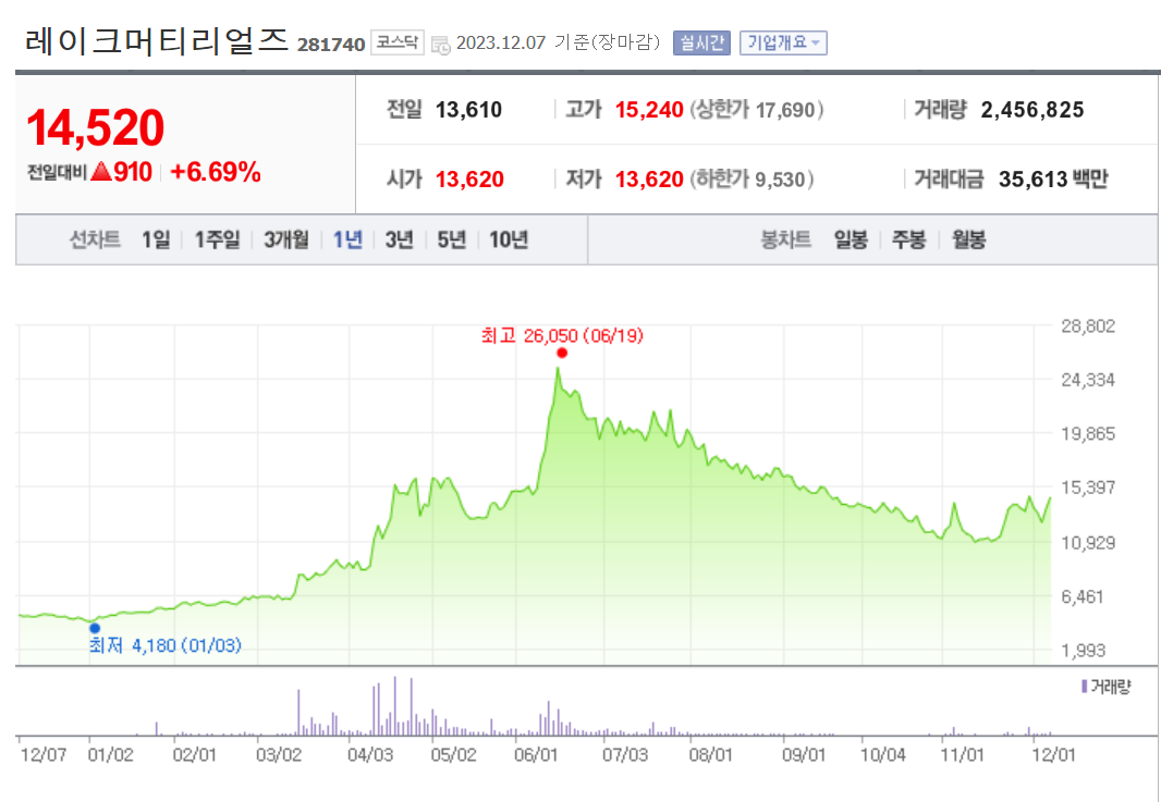 레이크머티리얼즈, 전날 이어 10% 급등…1만5000원선 재돌파 눈앞 - 이코노뉴스