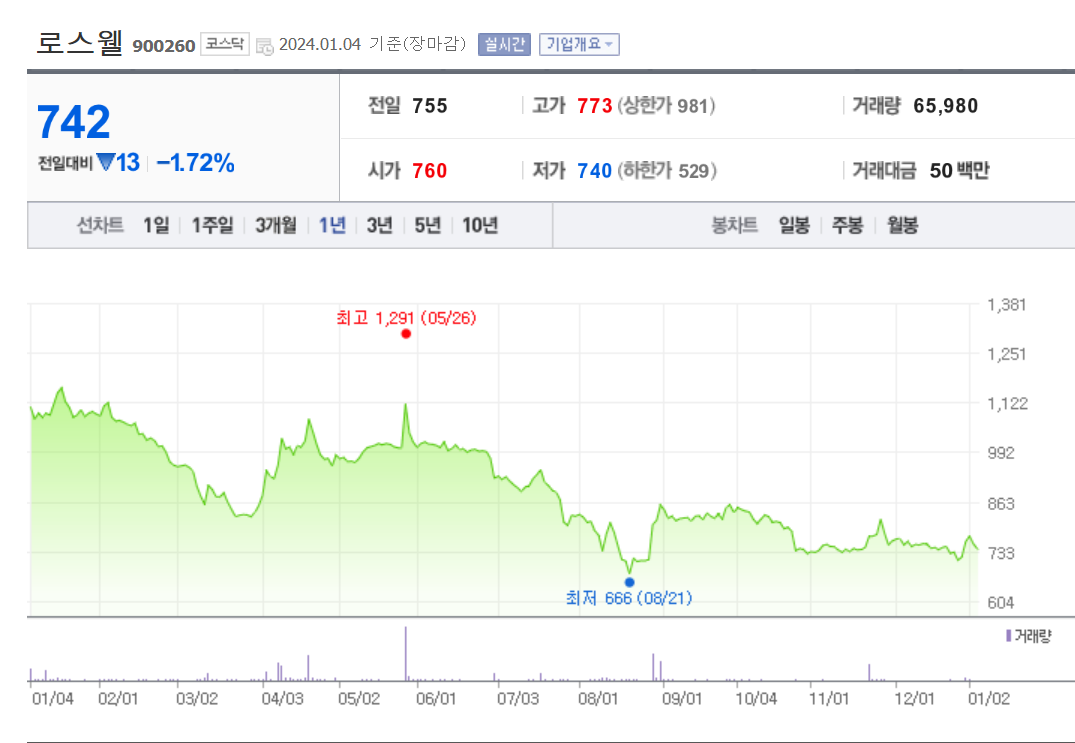 로스웰는 자동차부품 기업입니다. 대표자는 저우샹동 이며 설립일은 2014/02/05, 주식 상장일은 2016/06/30입니다. 전체 종업원 수는 554명 이고 본사 주소는 Unit 402, 4th Floor, Fairmont House, No. 8 Cotton Tree Drive, Admiralty Hong Kong입니다.