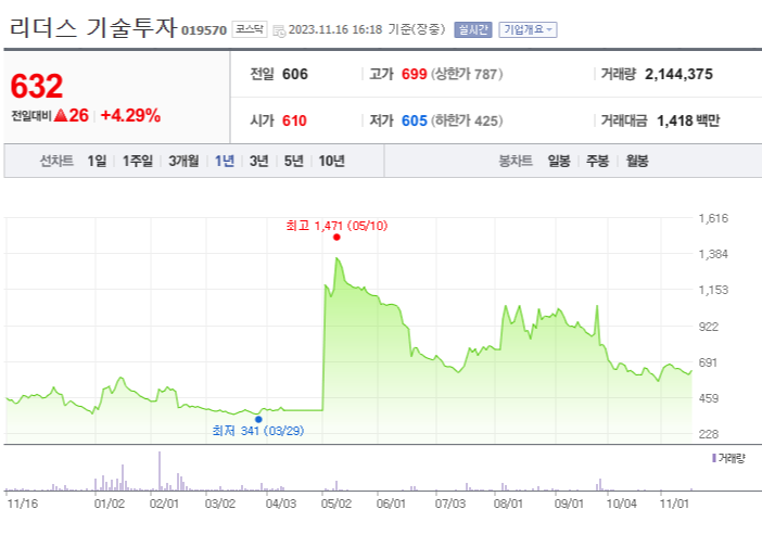 리더스 기술투자 주가 분석