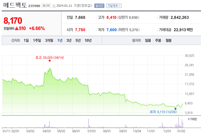 이 글에서는 메드팩토 주가 전망과 목표 주가, 기업 정보에 대해서 설명합니다. 주식 시장에서 중요한 것은 미래의 기업 가치를 예측하고 선제적으로 움직이는 것입니다. 투자할 종목을 고르기 전에 현재 기업의 현황과 데이터를 확인하는 것이 필요합니다. 메드팩토 주식의 주요 현황과 투자 정보를 확인하시고 주식 투자에 유용한 정보들을 한 곳에 정리해두었으니 투자 전에 확인하시기 바랍니다.