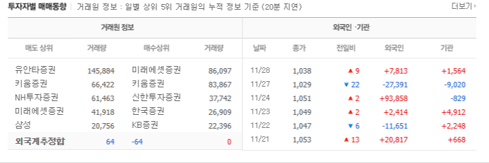 그렇기에 개인 투자자는 기관이나 외국인 세력의 움직임을 따라가며, 약한 세력에서도 투자로 수익을 얻는 것이 가능합니다. 최근의 경향은 외국인보다 기관 투자자의 움직임을 따르는 경우가 많아진 것이며, 외국인의 매수는 종종 허수이고 개인의 단기 거래는 기관과 비슷합니다.