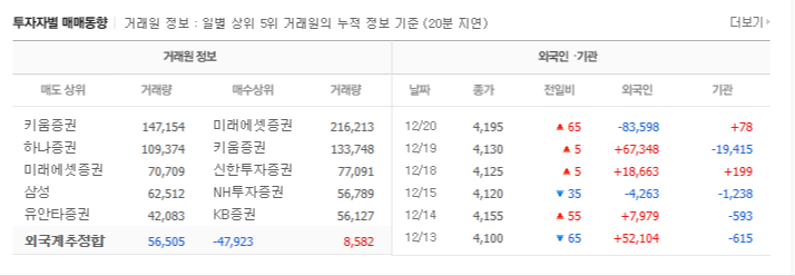 따라서 개인 투자자는 기관이나 외국인 세력을 따르고, 세력이 약해도 어떤 주식을 매수하고 매도하여 이익을 얻습니다. 최근, 외국인보다 기관 투자자의 움직임을 따르는 경우가 더 많으며, 외국인의 매수가 신뢰성이 낮고 개인의 단기 거래가 기관과 비슷하기 때문입니다.