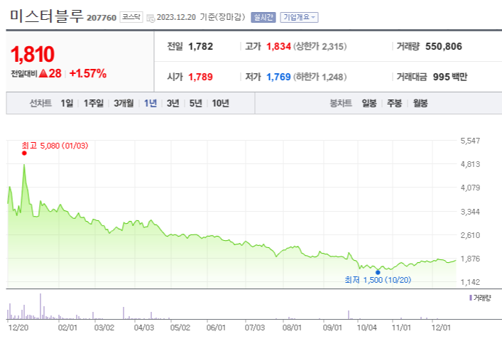 미스터블루, 20억 규모 자사주 매입 결정…"주주가치 제고" (naver.com)