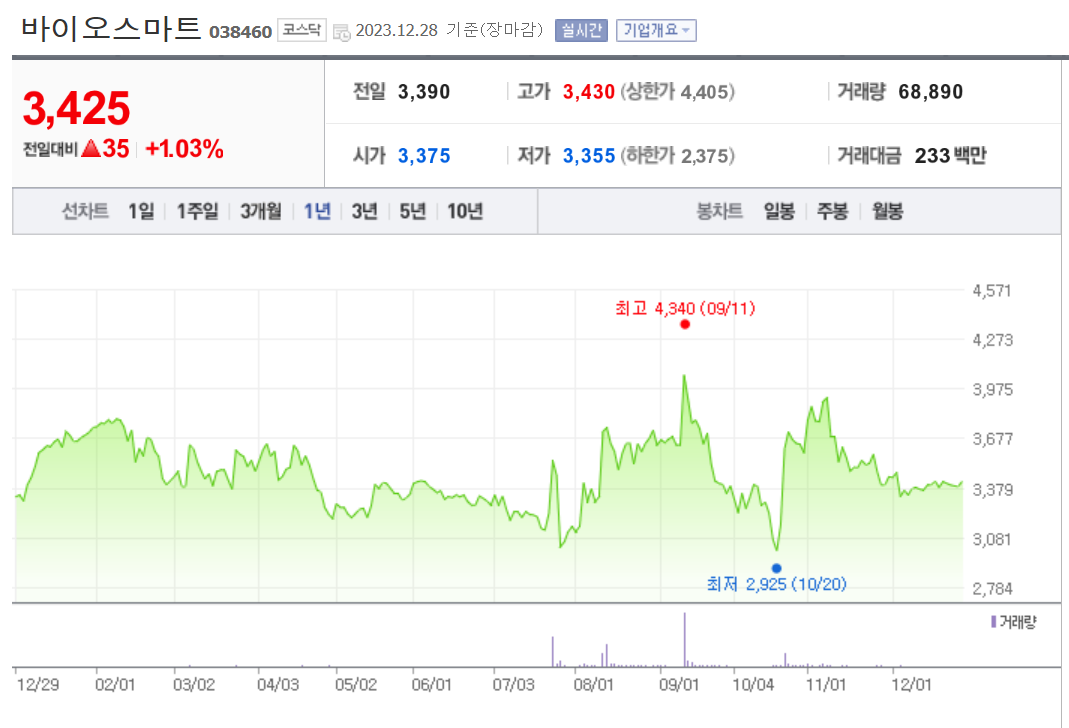 이 글에서는 바이오스마트 주가 전망과 목표 주가, 기업 정보에 대해서 설명합니다. 주식 투자의 중심은 미래의 기업 가치를 예측하고 선제적으로 움직이는 것입니다. 투자할 종목을 고르기 전에 현재 기업 상태와 지표를 살펴야 합니다. 바이오스마트 주식의 주요 현황과 투자 정보를 확인하시고 주식 투자에 도움을 줄 자료들을 모아 두었으니 투자에 도움을 받으시길 바랍니다.