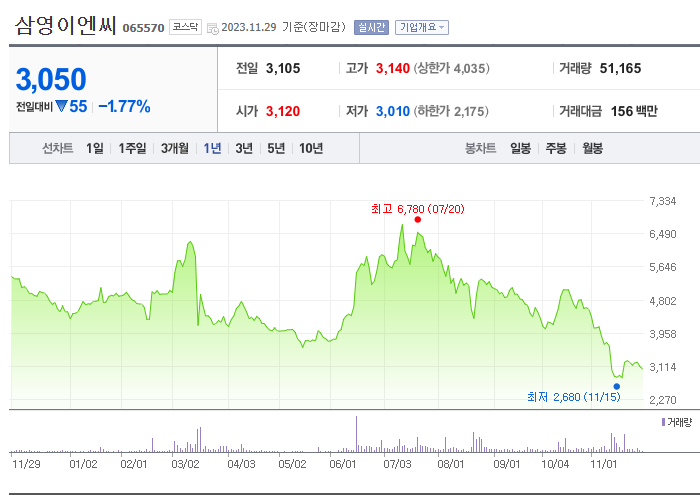 [52주 최저가] 삼영이엔씨 12.2%↓, 16개 종목 장중 신저가 - 아이투자 (itooza.com)