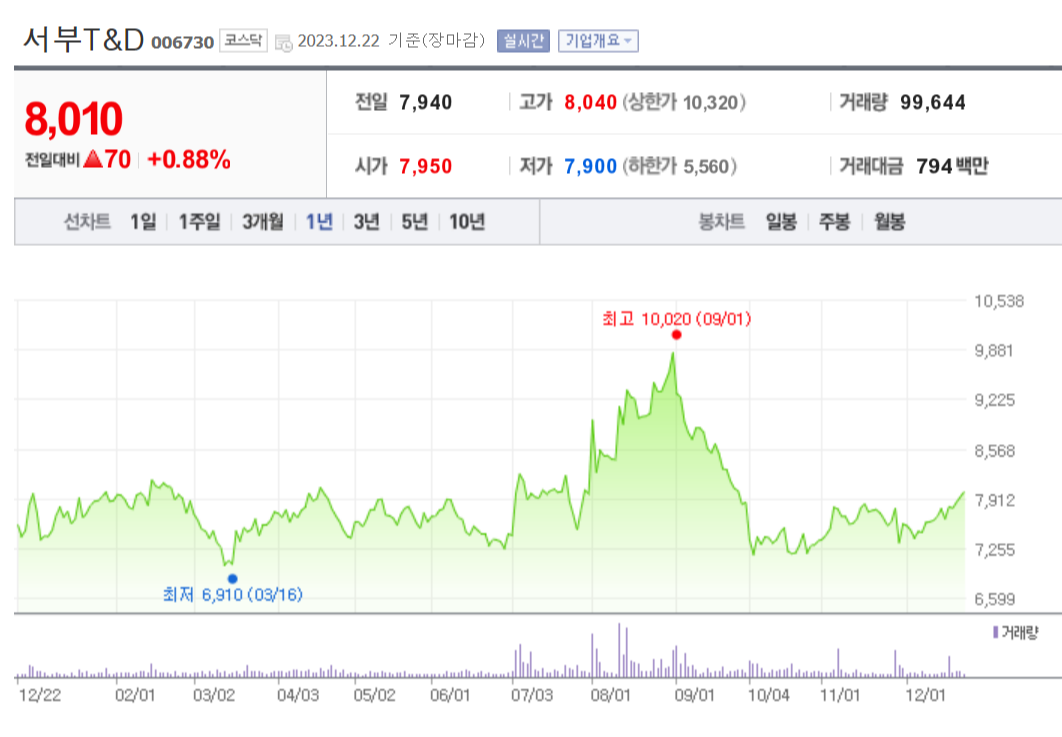 이 글에서는 서부T&D 주가 전망과 목표 주가, 기업 정보에 대해서 설명합니다. 주식 거래에서 중요한 부분은 현재 기업 가치보다는 미래의 기업 가치를 예측하고 먼저 행동하는 것입니다. 투자할 종목을 고르기 전에 현재 기업의 상황과 지표를 살펴보는 것이 중요합니다. 서부T&D 주식의 주요 현황과 투자 정보를 확인하시고 주식 투자를 위한 유용한 자료들을 모아놓았으니 투자 시 참고하시면 도움이 될 것입니다.
