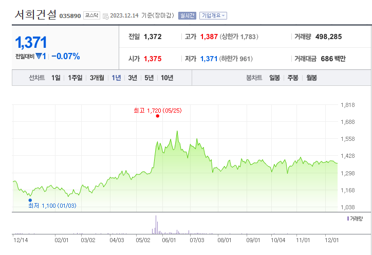 서희건설 주가 분석