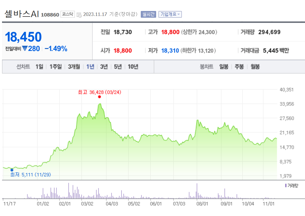 셀바스AI는 의료 장비 및 서비스 기업으로 현재 주가는 18,450원이며 전일 대비 -280원의 모습을 보이고 있습니다. 셀바스AI의 주주현황을 살펴보면 곽민철(외 1인)이 지분 11.57%를 소유하고 있습니다. 셀바스AI의 시가 총액은 4966억 원이며 발행 주식수는 26,914,790주 입니다. 외국인 보유 비중은 6.87% 이며 장중 거래량은 294,699를 기록했습니다. 매출액은 257억 원, 영업이익은 50억 원을 달성했습니다. EPS는 210원이며 PER은 87.86배를 나타냈습니다.