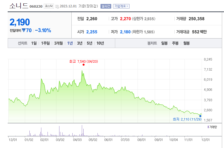 소니드 주가 분석