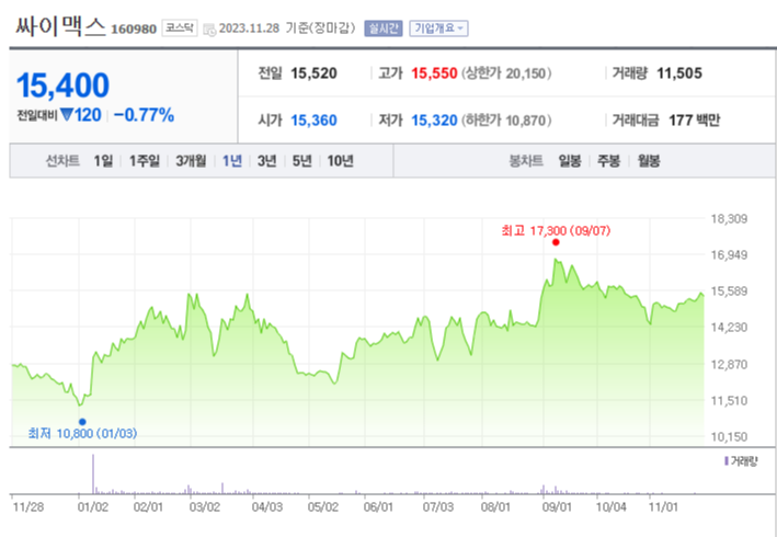 싸이맥스 주가 분석