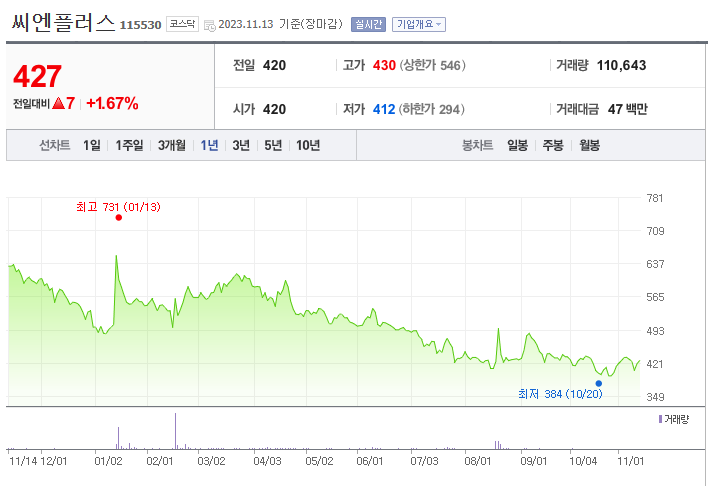 이 글에서는 씨엔플러스 주가 전망과 목표 주가, 기업 정보에 대해서 설명합니다. 주식 투자에서 핵심은 미래의 기업 가치를 예상하고 선제적으로 움직이는 것입니다. 투자 대상을 결정하기 전에 현재 기업의 현황과 수치를 검토하는 것이 필요합니다. 씨엔플러스 주식의 주요 현황과 투자 정보를 확인하시고 주식 투자에 유용한 자료들을 정리하여 제공하오니 효율적인 투자를 해보세요.