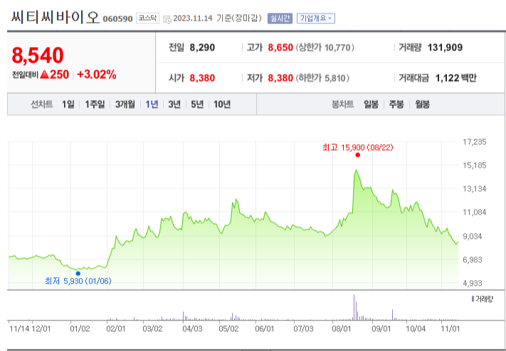 -2023년 6월 전년동기 대비 연결기준 매출액은 21.5% 감소, 영업이익은 98.7% 감소, 당기순이익 적자전환. 동사의 2분기 실적은 "사료첨가제 '씨티씨자임(CTCZYME)' 판매량이 고르게 성장해 실적에 기여 한 것으로 보임. 전년도 호실적에 따른 기저효과로 전년 동기 대비 실적은 감소한 것으로 집계됐었으나, '씨티씨자임' 대규모 글로벌 공급 계약 등 하반기 실적 개선의 요인은 충분한 상황으로 보여짐.