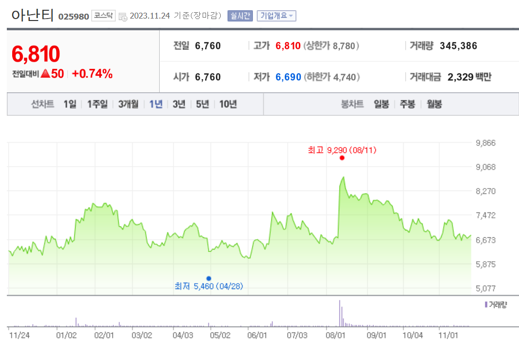 -2023년 6월 전년동기 대비 연결기준 매출액은 278.8% 증가, 영업이익은 343.7% 증가, 당기순이익 흑자전환. 당반기 분양수익이 4,500만원 추가 발생하였음. 해당 수익은 단기적이지만 회원권 판매 증가로 인한 차후 운영수익 확대로 이어질 것으로 판단함. 제주도 묘산봉 관광단지 내 골프장 & 리조트 플랫폼을 계속 개발 중이고, 경기도 청평에 신규 플랫폼 레이크 드 아난티코드를 추진 중.