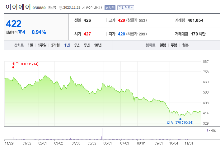 아이에이 주가 분석