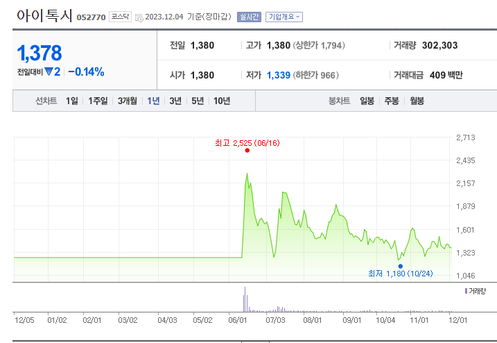 이 글에서는 아이톡시 주가 전망과 목표 주가, 기업 정보에 대해서 설명합니다. 주식 시장에서 중요한 것은 미래의 기업 가치를 예측하고 선제적으로 움직이는 것입니다. 투자할 종목을 고르기 전에 현재 기업의 현황과 데이터를 확인하는 것이 필요합니다. 아이톡시 주식의 주요 현황과 투자 정보를 확인하시고 주식 투자에 유용한 정보들을 한 곳에 정리해두었으니 투자 전에 확인하시기 바랍니다.