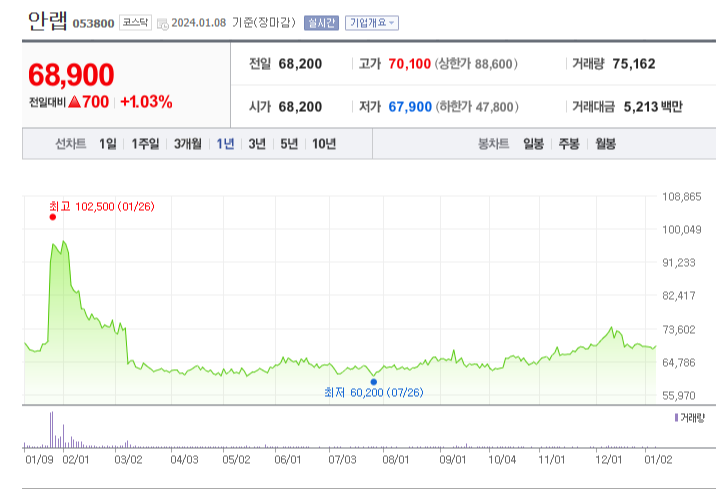 이 글에서는 안랩 주가 전망과 목표 주가, 기업 정보에 대해서 설명합니다. 주식 시장에서 중요한 것은 미래의 기업 가치를 예측하고 선제적으로 움직이는 것입니다. 투자 대상을 선택하기 전에 현재 기업의 현황과 데이터를 확인하는 것이 필요합니다. 안랩 주식의 주요 현황과 투자 정보를 확인하시고 주식 투자에 도움이 될 만한 정보들을 모아 놓았으니 투자를 고려하실 때 참고하세요.