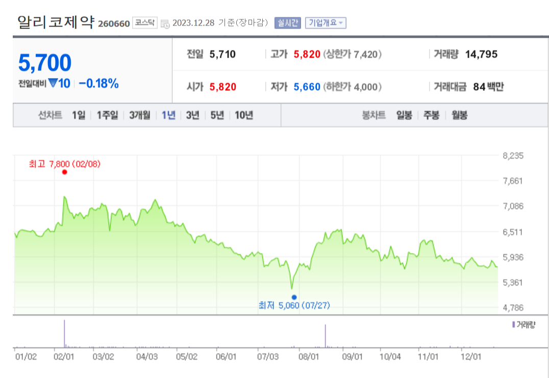알리코제약 주식 결론