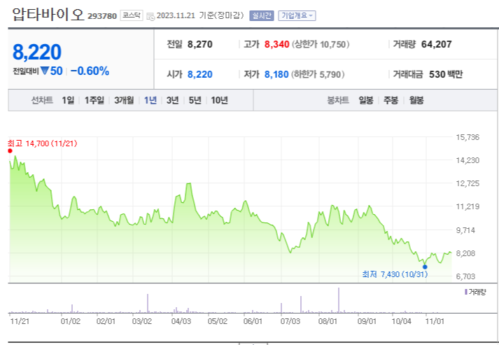 압타바이오 주가 분석