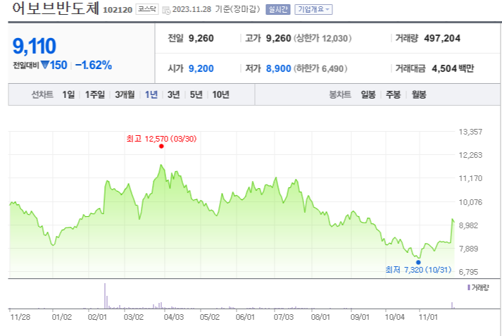 어보브반도체 주가 분석