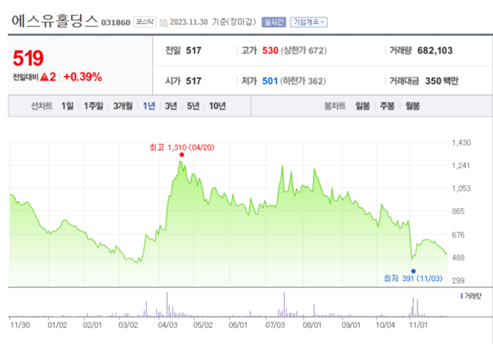 이 글에서는 에스유홀딩스 주가 전망과 목표 주가, 기업 정보에 대해서 설명합니다. 주식 투자의 핵심은 미래 기업 가치를 예측하고 선제적으로 대응하는 것입니다. 투자 대상을 선택하기 전에 현재 기업 상황과 지표를 조사해야 합니다. 에스유홀딩스 주식의 주요 현황과 투자 정보를 확인하시고 주식 투자에 도움이 되는 정보들을 모아 제공하니 투자에 도움을 받으실 수 있을 것입니다.