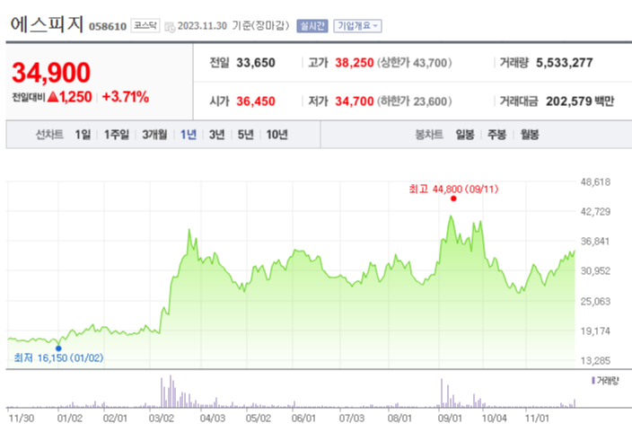 [특징주] 에스피지, 전날 기업 설명회 이후 주가 급등 < 증권 < 금융/증권 < 기사본문 - 이코노믹리뷰 (econovill.com)
