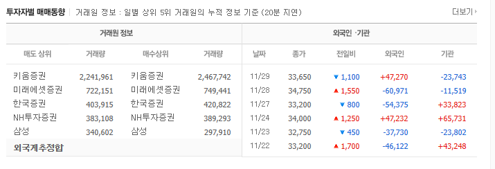 그러므로 개인 투자자는 기관이나 외국인 세력을 따라가지 않을 수 없으며, 세력이 약한 상태에서 어떤 것을 사고 팔아 수익을 창출할 수 있습니다. 최근, 외국인보다 기관 투자자의 움직임을 따르는 경우가 더 많으며, 외국인의 매수가 신뢰성이 낮고 개인의 단기 거래가 기관과 비슷하기 때문입니다.