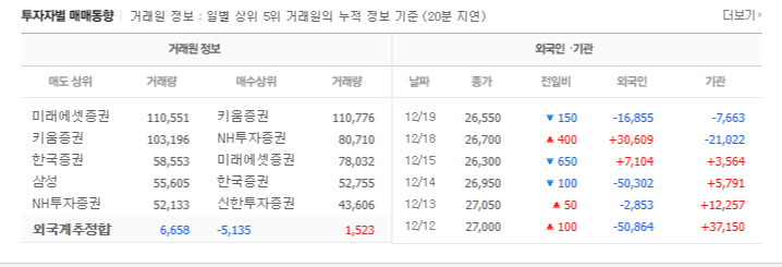 그래서 개인 투자자는 기관이나 외국인 세력을 따르고, 세력이 약해도 어떤 걸 사고 팔아 이익을 얻습니다. 기관 투자자를 따르는 트렌드가 최근에 더 일반적인 것으로 보이며, 이는 외국인의 매수가 불안정하고 개인의 단기 거래가 기관과 유사하기 때문입니다.
