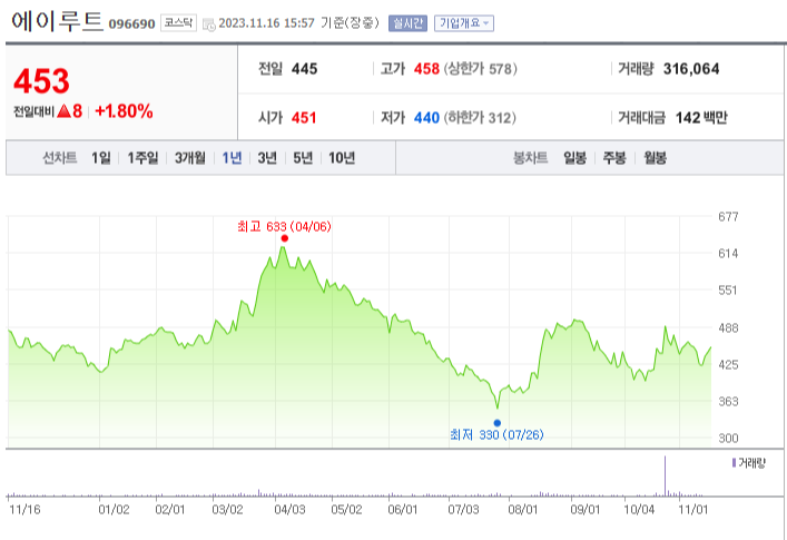 에이루트 주가 분석