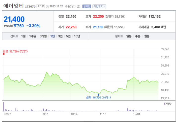 이 글에서는 에이엘티 주가 전망과 목표 주가, 기업 정보에 대해서 설명합니다. 주식 시장에서 중요한 것은 미래의 기업 가치를 예측하고 선제적으로 움직이는 것입니다. 투자할 종목을 고르기 전에 현재 기업의 현황과 데이터를 확인하는 것이 필요합니다. 에이엘티 주식의 주요 현황과 투자 정보를 확인하시고 주식 투자에 도움이 되는 자료를 모아두었으니 참고하셔서 투자에 도움을 받으시길 바랍니다.