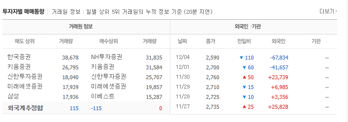 그러므로 개인 투자자는 기관이나 외국인 세력의 추세를 따르고, 약한 세력에서도 어떤 것을 매수하고 매도하여 수익을 냅니다. 기관 투자자를 따르는 트렌드가 최근에 더 일반적인 것으로 보이며, 이는 외국인의 매수가 불안정하고 개인의 단기 거래가 기관과 유사하기 때문입니다.