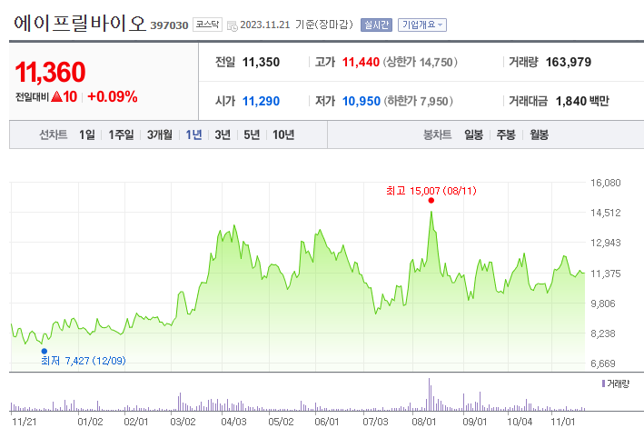 에이프릴바이오 주가 분석