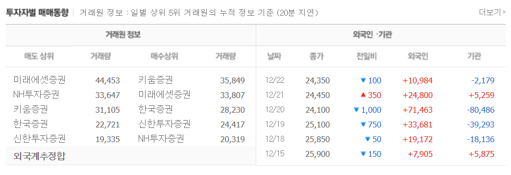 그렇기에 개인 투자자는 기관이나 외국인 세력을 따라가며, 세력이 약한 상태에서도 투자로 수익을 내는 것이 가능합니다. 기관 투자자를 따르는 트렌드가 최근에 더 일반적인 것으로 보이며, 이는 외국인의 매수가 불안정하고 개인의 단기 거래가 기관과 유사하기 때문입니다.
