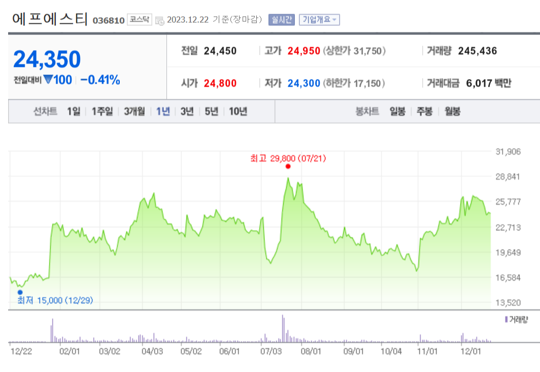 에프에스티는 반도체 및 관련장비 기업입니다. 대표자는 장경빈 이며 설립일은 1987/09/29, 주식 상장일은 2000/01/18입니다. 전체 종업원 수는 756명 이고 본사 주소는 경기도 화성시 동탄면 동탄산단6길 15-23입니다.
